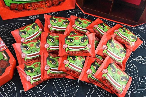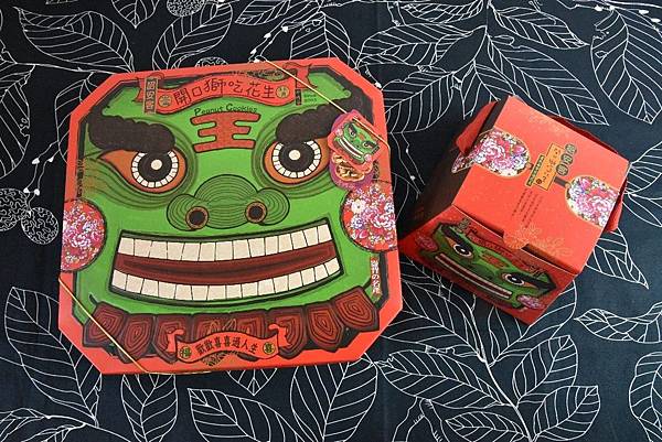 首先我們先看到的是開口獅花生餅的包裝,以融入地方客家詔安文化開口獅形象為設計,共有一大一小兩種款式,大的開口獅花生餅就很適合當作禮盒送禮,小的則可以當作小禮物,傳達心意,開口獅花生餅的包裝設計也非常符合過年氣氛呢!