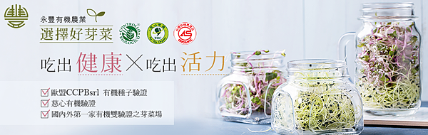 而永豐的有機蔬菜就是國內外第一家擁有兩項有機認證的有機蔬菜芽菜場,一是慈心有機認證,二是歐盟CCPBsrl有機種子認證。因為芽菜栽培時間較短,一般種子無法透過土壤完全釋放化學農業,所以永豐堅持採用進口昂貴的有機種子,再透過永豐的有機農場,讓有機蔬菜富含豐富的營養!
