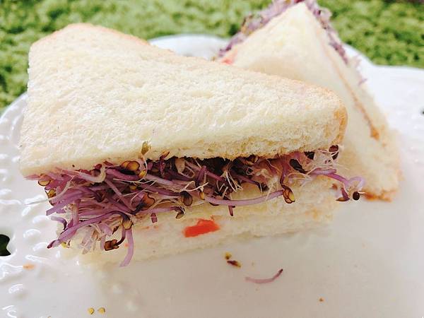 - 先將吐司拿去烤,在等待途中將芽菜洗淨並瀝乾