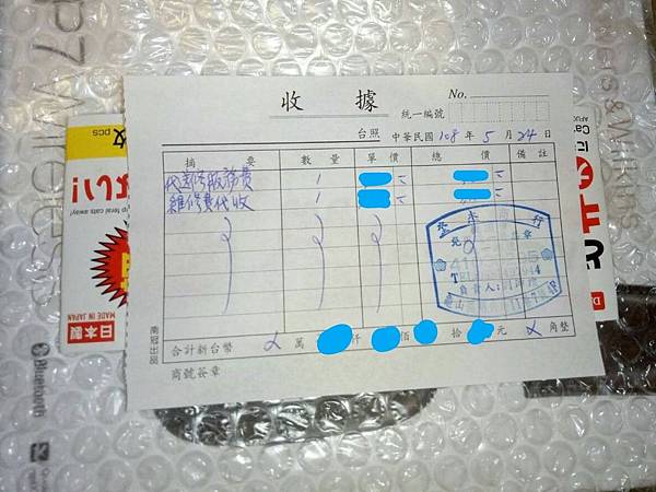 而且沒想到居然可以開收據哈哈,費用也寫得很清楚。